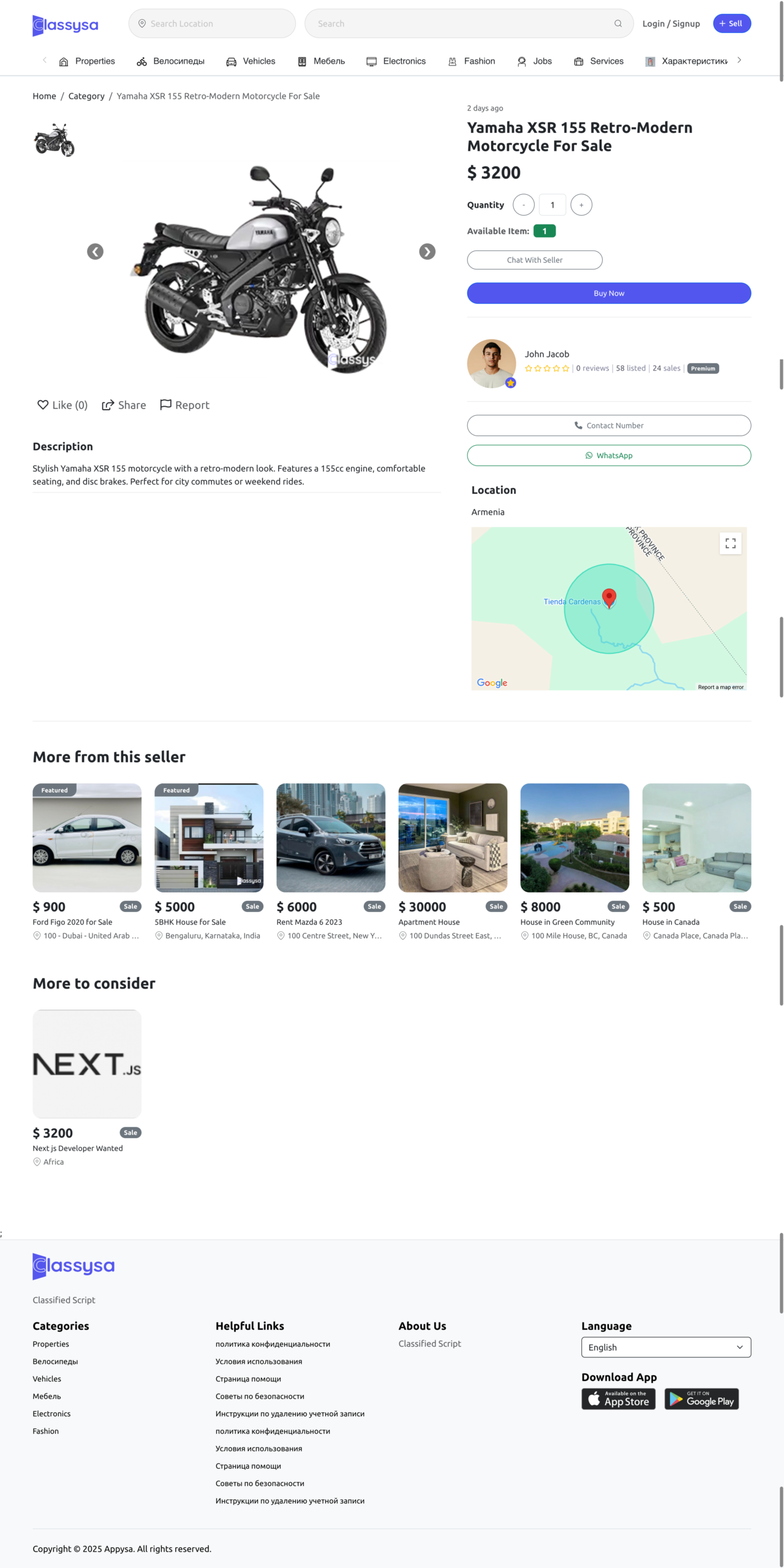 What’s Included? Our script supports various categories like Properties, Bikes, Cars, and Furniture. It features a clean, modern UI with "Featured" ad placements and a simple user interface for both buyers and sellers.